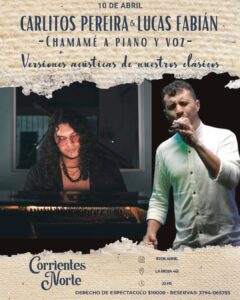 El viernes 10 de abril, Carlitos Pereira y Lucas Fabián estarán presentando “Chamamé a piano y voz”.