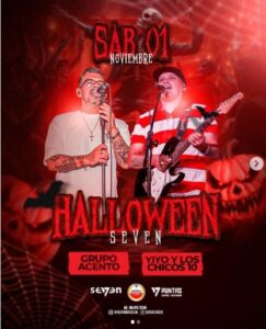 🎃👻 SÁBADO 1ro DE NOVIEMBRE SEVEN PRESENTA HALLOWEEN ULTRACUMBIA 🎃👻 VENI A VIVIR OTRA NOCHE ÚNICA CON 2 BANDAS QUE LA ROMPEN @yiyoyloschicosdiez_ok + @m.t_grupo_acento 🧨 EN VIVO 👉 ANÍMATE A VENIR DISFRAZADO/A , ESTAREMOS ENTREGANDO $300.000 AL MEJOR DISFRAZ FEMENINO Y MASCULINO MÁS BEBIDAS Y PROMOS TODA LA NOCHE 💣 CONSEGUÍ TUS #ANTICIPADAS DESDE LUNES 20 EN EL MISMO BOLICHE 17 a 21 hs y EN COMPLEJO EL PARQUE 18 a 00hs 🎫 GENERAL $8.000 🎟️ VIP $12.000