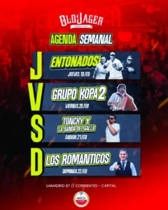 AGENDA SEMANAL ●JUEVES - ENTONADOS + (Lucas Lopez & Los Chaques). ●VIERNES - GRUPO KOPA2 ●SABADO - TONCHY Y LA BANDA DEL GALLO ●DOMINGO - ROMANTICOS Reserva tus mesas y conseguí tus accesos. Info y reservas +54 9 378 2611512