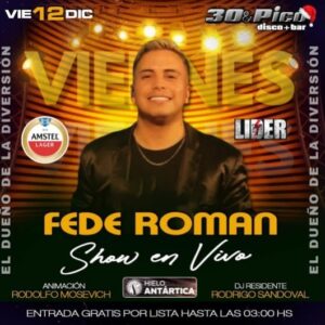 Este VIERNES llega a tocar en Vivo con Toda la Banda Fede Roman 🔥🔥🔥, para Vivir una Noche repleeeeta de Éxitos y más éxitos….