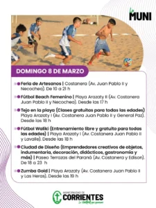 ¡Cerramos el fin de semana con todo en Corrientes! Te compartimos la agenda para este domingo 8 de marzo: Feria de Artesanos: Costanera (Av. Juan Pablo II y Necochea) | 10 a 21 h. Fútbol Beach Femenino: Playa Arazaty II | Desde las 17 h. Tejo en la playa: Playa Arazaty I | Desde lasVer Mais →