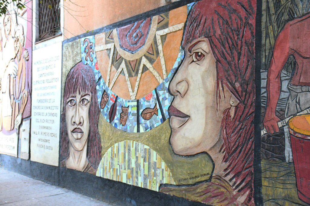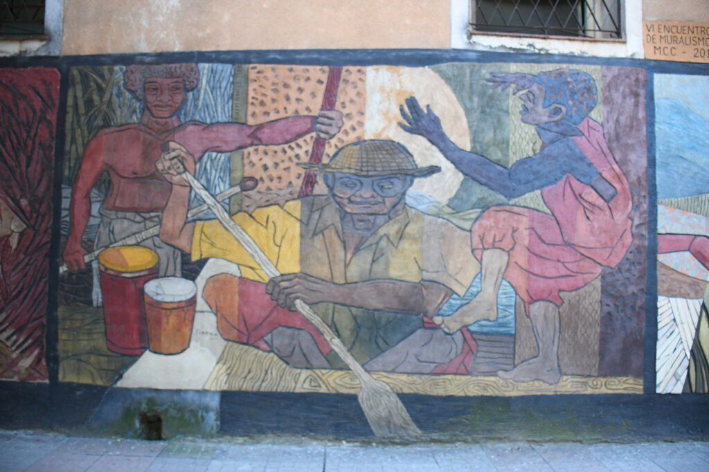 En los murales están representadas las tradiciones típicas de la comunidad afroargentina a través de figuras, como la danza y los bombos que simbolizan el candombe, un género musical de origen Africano.